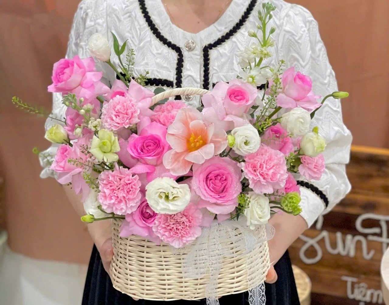 Sự kết hợp của các chất liệu hoa này tạo nên một thiết kế hài hòa, nữ tính và cuốn hút, phù hợp với nhiều phong cách quà tặng khác nhau. Tùy theo mẫu thiết kế và thời điểm, sản phẩm sẽ được phối chọn linh hoạt để đảm bảo độ tươi mới, tính thẩm mỹ và sự cân đối trong bố cục. Đây là lựa chọn lý tưởng dành cho những dịp cần một món quà vừa đẹp mắt, tinh tế vừa thể hiện sự trân trọng và yêu thương đối với người nhận.