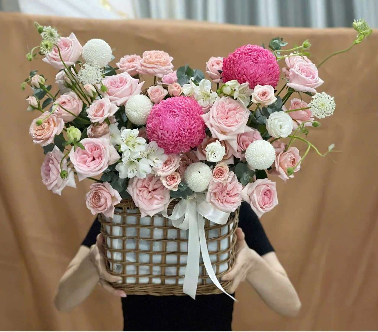 Sự kết hợp của các chất liệu hoa này tạo nên một thiết kế vừa nữ tính, trang nhã vừa đủ nổi bật để gây ấn tượng ngay từ ánh nhìn đầu tiên. Tùy theo mẫu thiết kế và thời điểm, sản phẩm sẽ được phối chọn linh hoạt để đảm bảo sự hài hòa về màu sắc, độ tươi mới và tính thẩm mỹ chung. Đây là lựa chọn phù hợp để dành tặng người thân, bạn bè, đối tác hoặc sử dụng trong những dịp cần một món quà đẹp mắt, sang trọng và giàu cảm xúc.