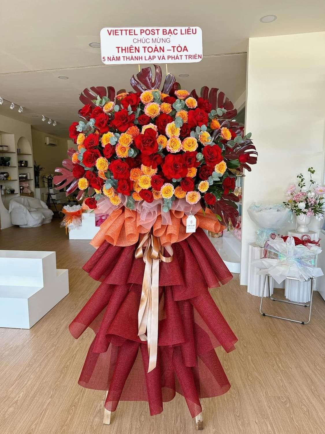 Với kiểu dáng kệ hoa lớn, màu sắc bắt mắt và bố cục đầy đặn, sản phẩm rất phù hợp để sử dụng trong các dịp khai trương, chúc mừng, sự kiện hoặc gửi tặng đối tác, khách hàng, bạn bè, người thân. Đây là mẫu kệ hoa không chỉ đẹp về hình thức mà còn thay lời chúc may mắn, thịnh vượng và phát triển bền vững được gửi trao một cách nổi bật, trang trọng và giàu thiện cảm.