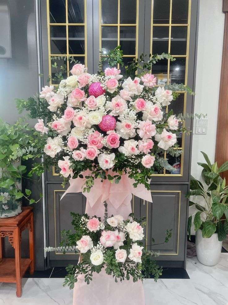 Với thiết kế cao, tông màu trang nhã và bố cục đầy đặn, sản phẩm rất phù hợp để sử dụng trong các dịp khai trương, chúc mừng, sự kiện hoặc gửi tặng đối tác, bạn bè, người thân. Đây là mẫu kệ hoa vừa thể hiện sự trân trọng, vừa gửi gắm lời chúc may mắn, thành công và phát triển bền vững một cách tinh tế và sang trọng.