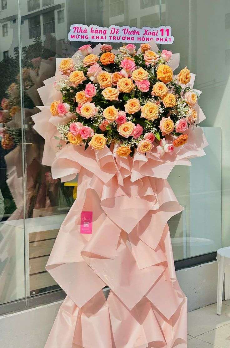 Với thiết kế cao, nổi bật và tông màu trang nhã, sản phẩm rất phù hợp để sử dụng trong các dịp khai trương, chúc mừng, sự kiện hoặc gửi tặng đối tác, bạn bè, người thân. Kệ hoa không chỉ mang giá trị thẩm mỹ mà còn thể hiện lời chúc phát triển, may mắn và thành công, là lựa chọn được nhiều khách hàng yêu thích nhờ sự sang trọng, nổi bật và dễ tạo ấn tượng ngay từ ánh nhìn đầu tiên.
